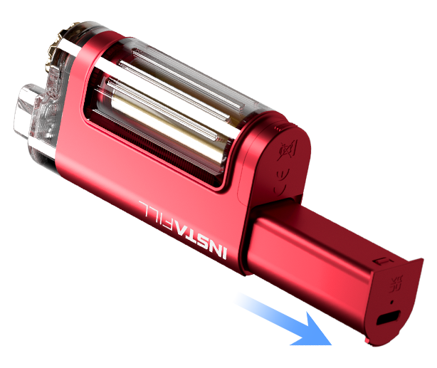 Instafill’s unique refilling system is very easy and convenient. Simply dock the dedicated refill cartridge and you’re all set and ready to go at the push of a button.